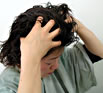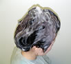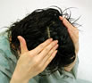 - 両手の指の腹をつかって、頭皮をゆっくりとていねいにマッサージし、泡立てます。