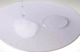 左側、ナノヒアルロン酸は超微粒子化されているため瞬時に浸透している様子が分かる。 |